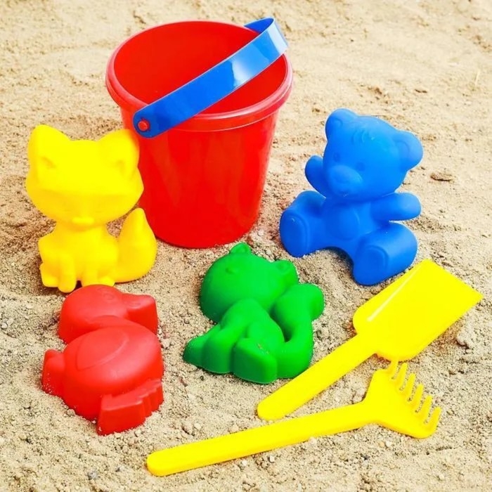 Набор для игры в песке №1: ведёрко, 4 формочки для песка, грабельки, лопатка, МИКС