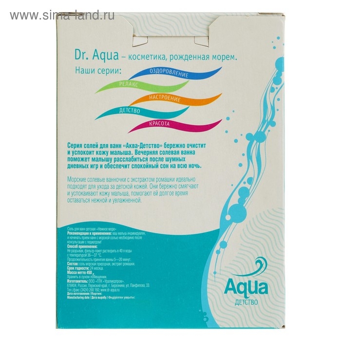 Соль для ванн детская морская природная «Первое море», 450 гр