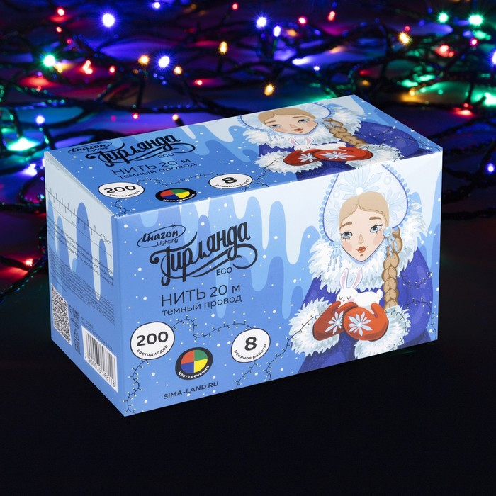 Гирлянда «Нить» 20 м, IP20, тёмная нить, 200 LED, свечение мульти, 8 режимов, 220 В