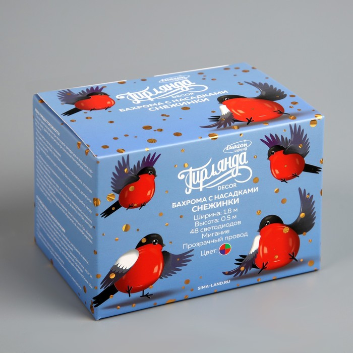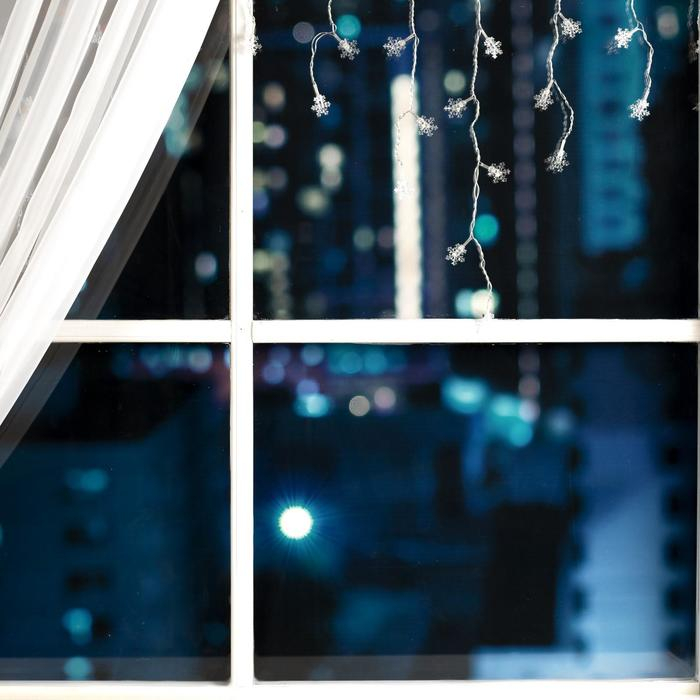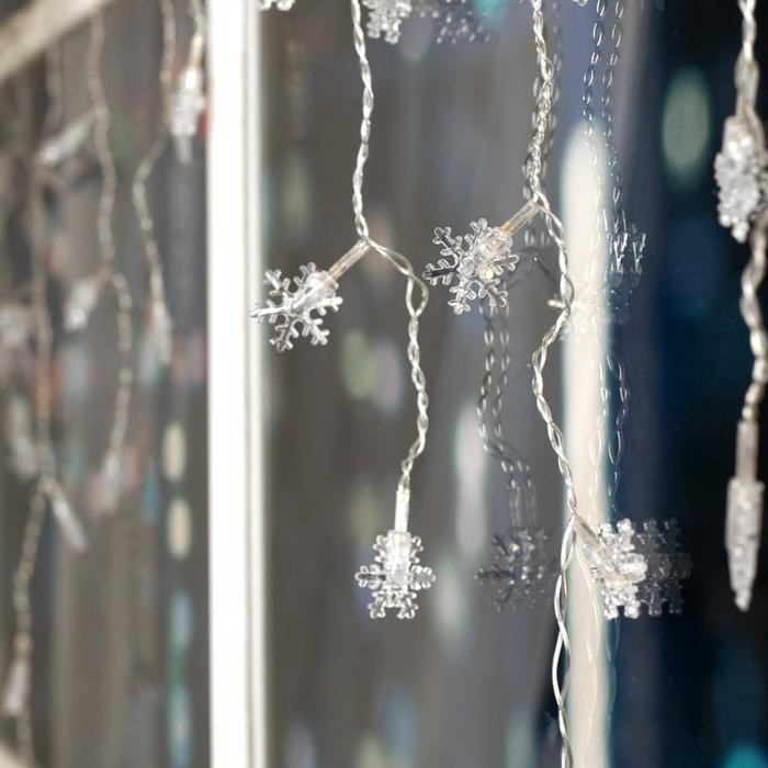 Гирлянда «Бахрома» 1.8 × 0.5 м с насадками «Снежинки», IP20, прозрачная нить, 48 LED, свечение мульти (RG/RB), мигание, 220 В
