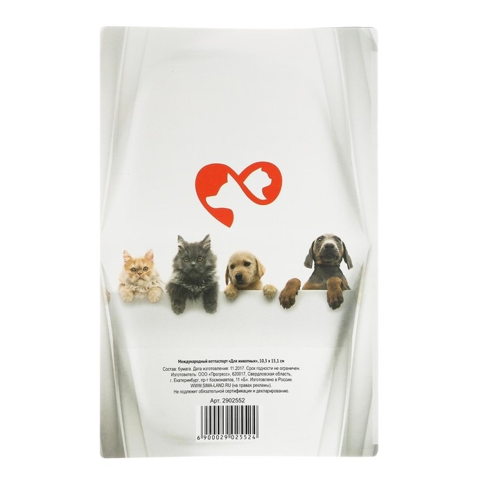 В этот документ включены данные о проведенных вакцинациях, чипировании, наличии прививок и информации о заболеваниях. Крепкая обложка из прочной бумаги обеспечивает продолжительный срок службы паспорта.