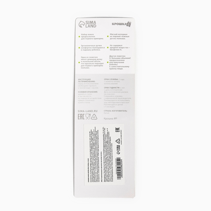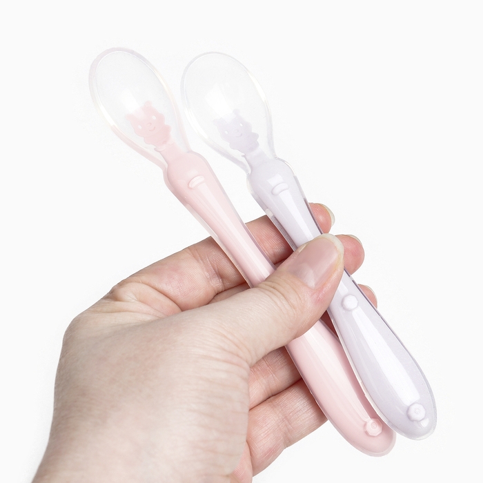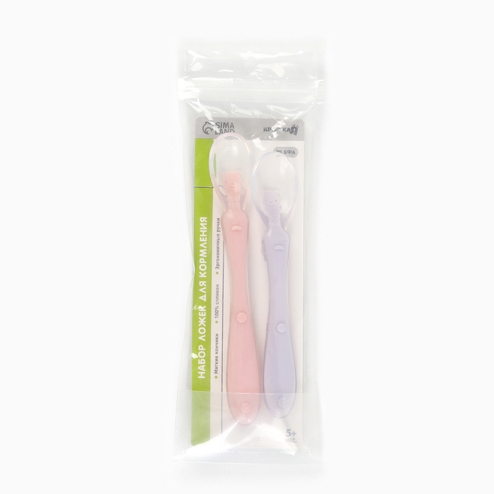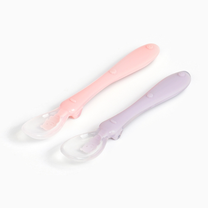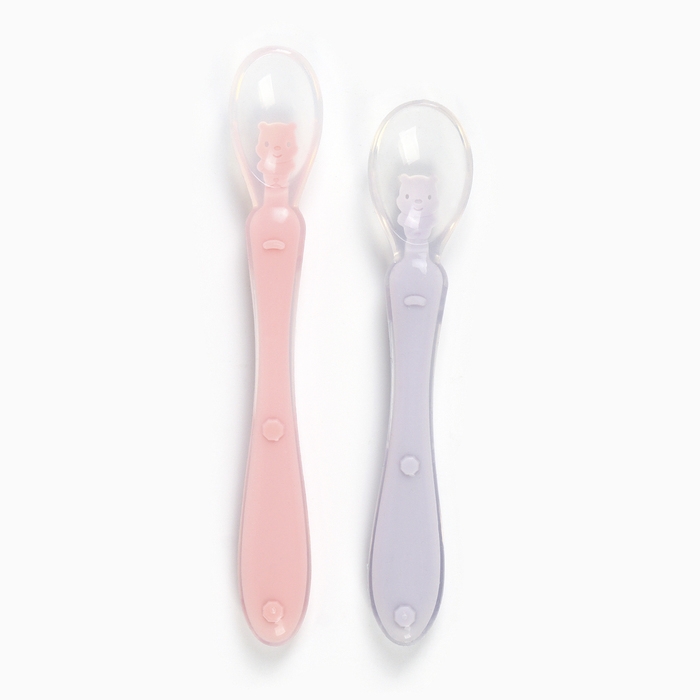 Ложка детская силиконовая для прикорма, набор 2 шт.. «Милые зверята», цвет розовый и фиолетовый, Крошка Я