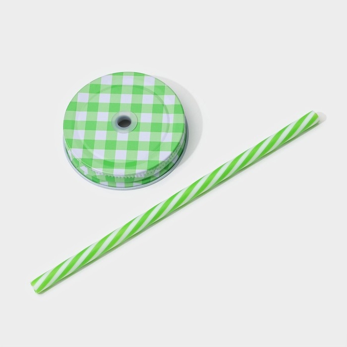 Набор кружек стеклянных Доляна «Летняя прохлада», 2 предмета: 2 кружки с крышками и трубочками 450 мл