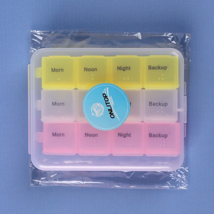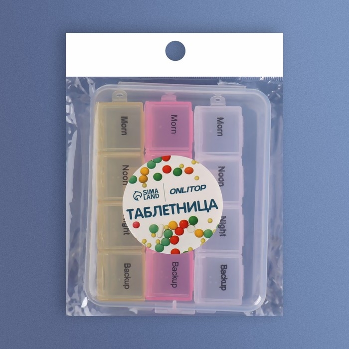 Таблетница - органайзер «Неделька», утро/день/вечер, 21,5 × 9 × 2 см, 21 секция, в коробке, разноцветная