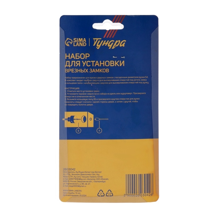 Набор для установки врезных замков с сверлом перовым ТУНДРА предназначен для установки дверных замков.
