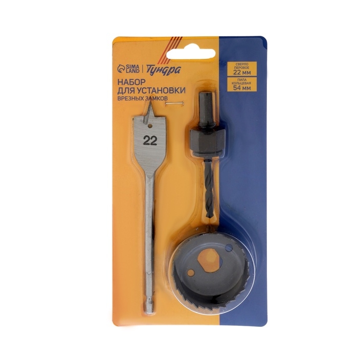 Набор для установки врезных замков ТУНДРА, сверло перовое 22 мм, пила кольцевая 54 мм
