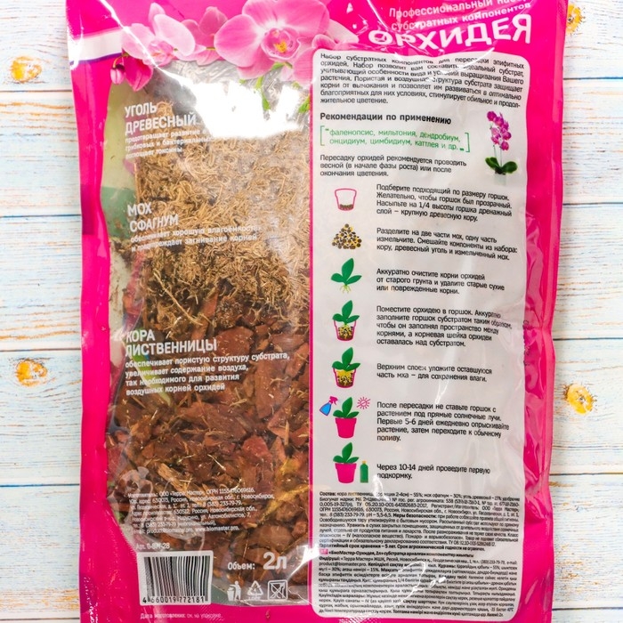 Набор субстратных компонентов для пересадки эпифитных орхидей. Состоит из высококачественных натуральных материалов: коры лиственницы, мха сфагнума и угля древесного. Пористая и воздушная структура субстрата защищает корни от вымокания и позволяет им развиваться в оптимально благоприятных для них условиях, стимулирует обильное и продолжительное цветение.