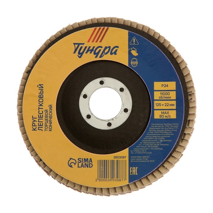 Круг лепестковый торцевой конический ТУНДРА, 125 х 22 мм, Р24