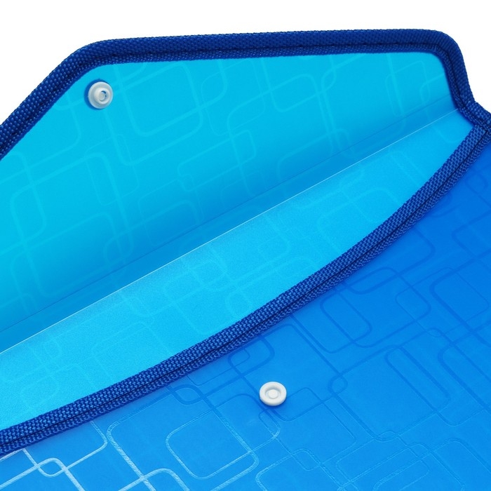 Папка-конверт на кнопке, А4, 80 мкм, "Клетка", тонированная, синяя