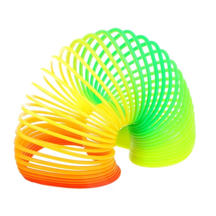 Пружинка наполнит день вашего малыша новыми увлекательными и развивающими играми. Просто перекидывайте её из руки в руку или растягивайте, как гармошку: она настроит на творческий лад и успокоит нервы. В процессе игр с ней расскажите ребёнку о настоящей радуге, ведь они так похожи.