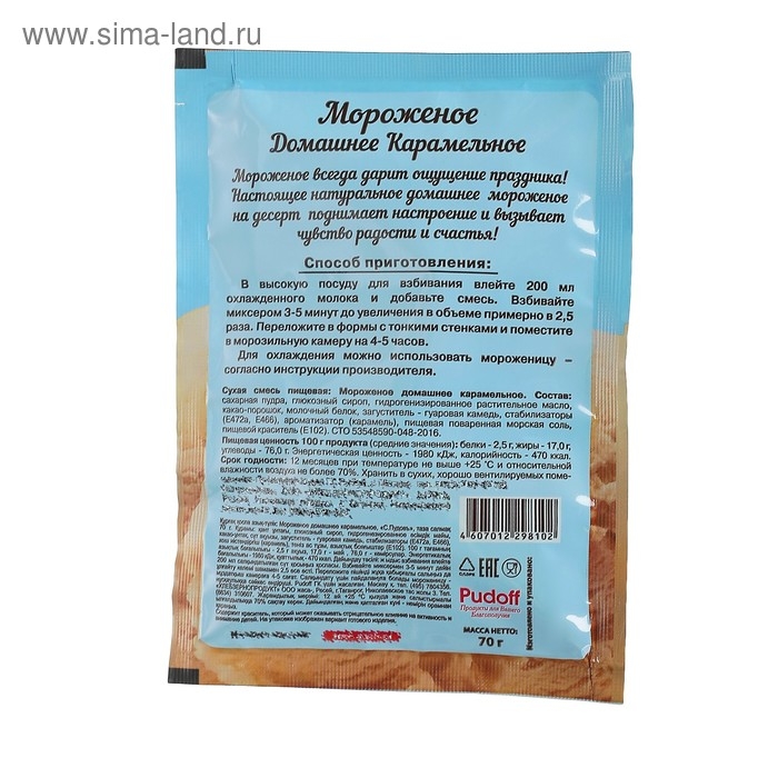 Смесь для приготовления мороженого «С. Пудовъ», карамельное, 70 г