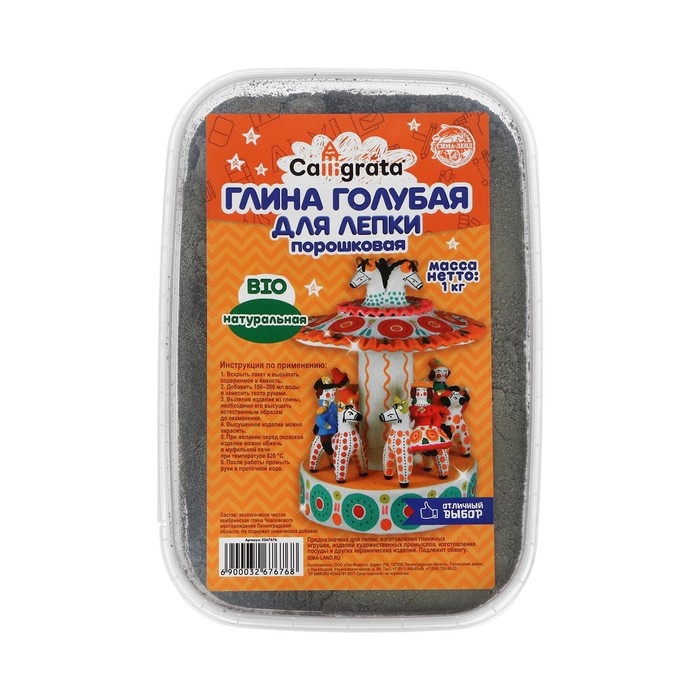 Глина для лепки натуральная голубая 1000 г, в порошке, Calligrata, самоотвердевает (подходит для обжига)