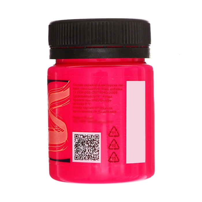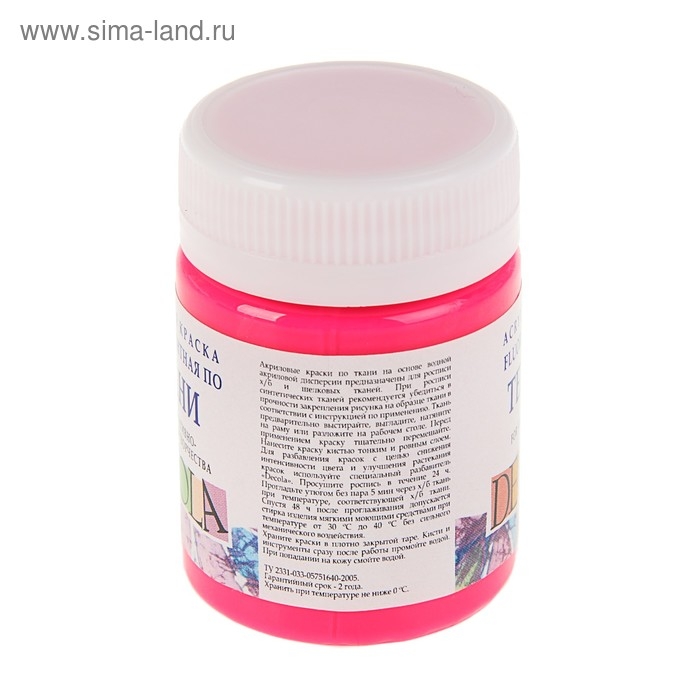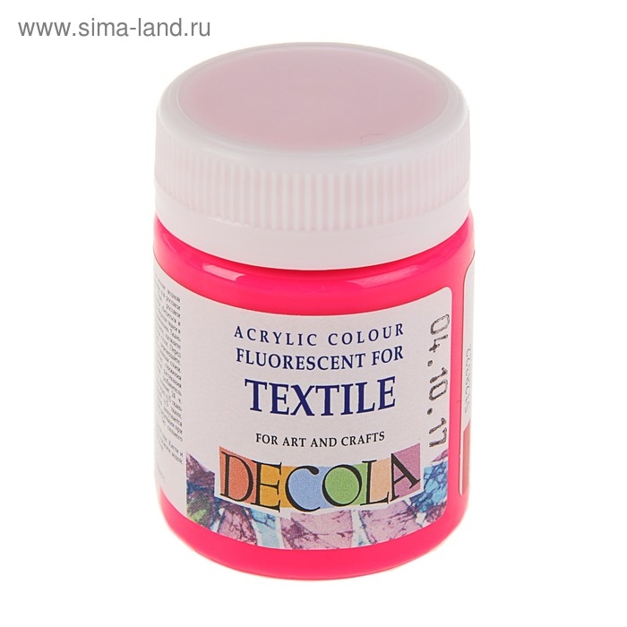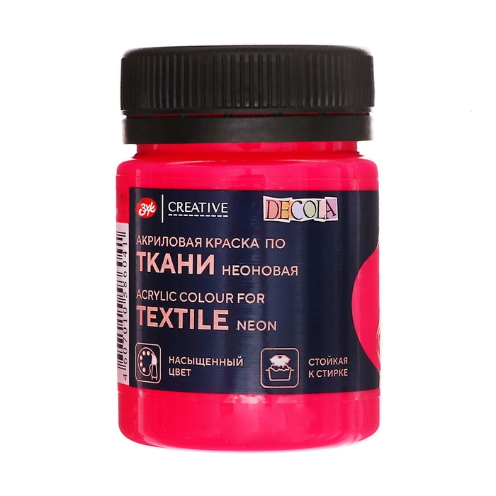 Краска по ткани, банка 50 мл, ЗХК Decola, Fluo флуоресцентная, Розовая (акриловая на водной основе), 5128322