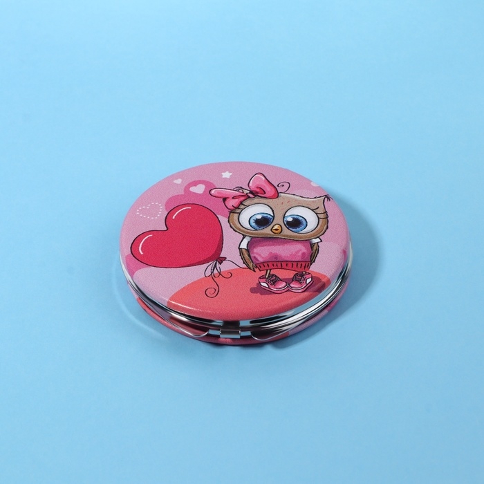 Зеркало складное «Совята», d = 6 см, искусственная кожа, цвет розовый