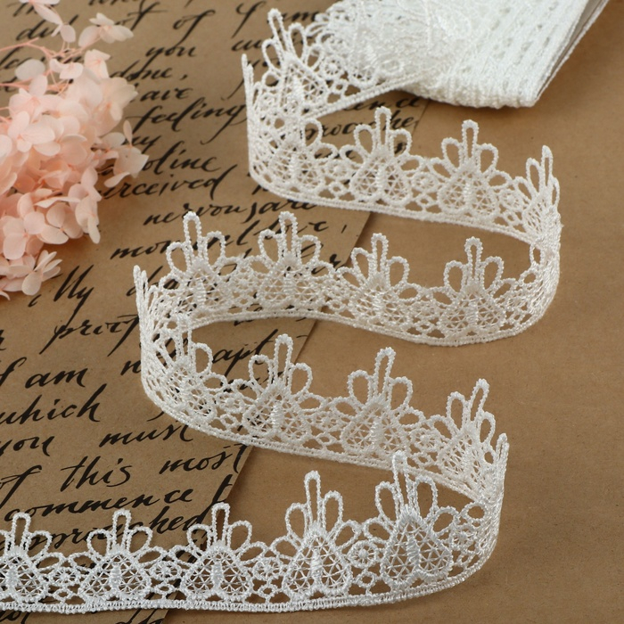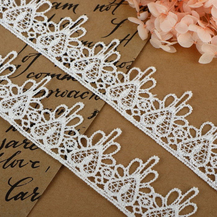 Кружево гипюровое, 35 мм × 9 ± 0,5 м, цвет белый