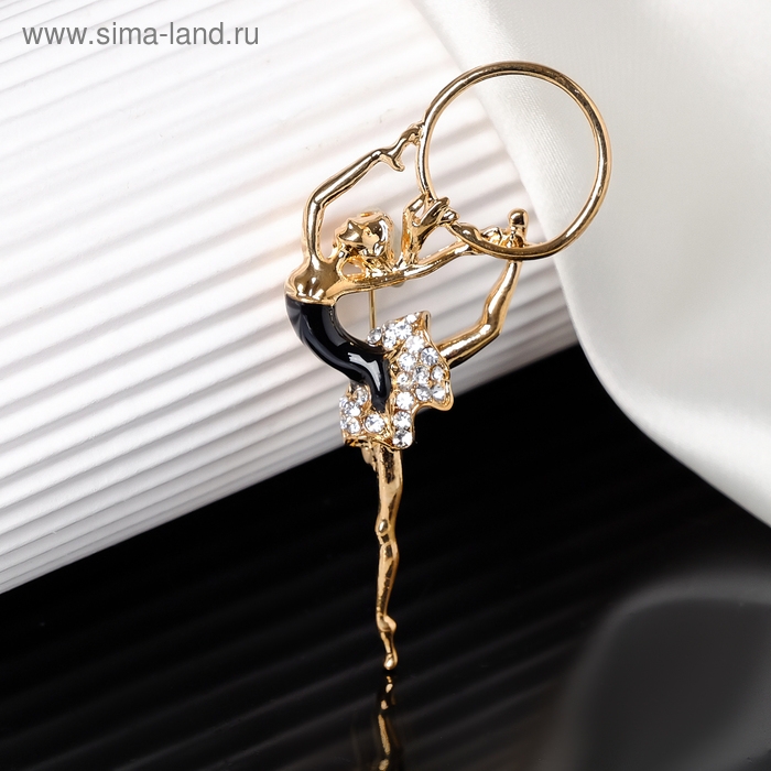 Брошь «Гимнастка» с хула-хупом, цвет чёрно-белый в золоте