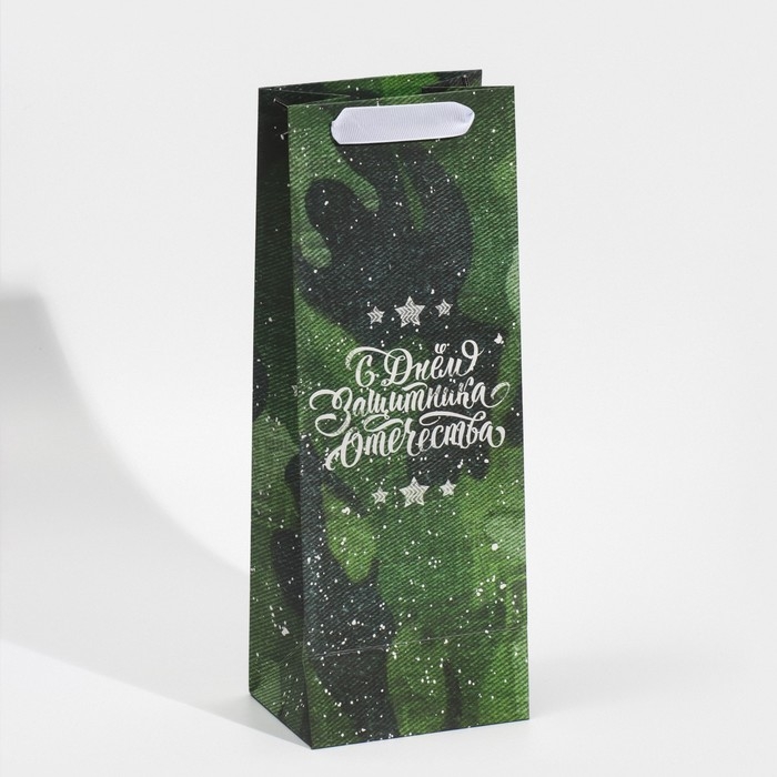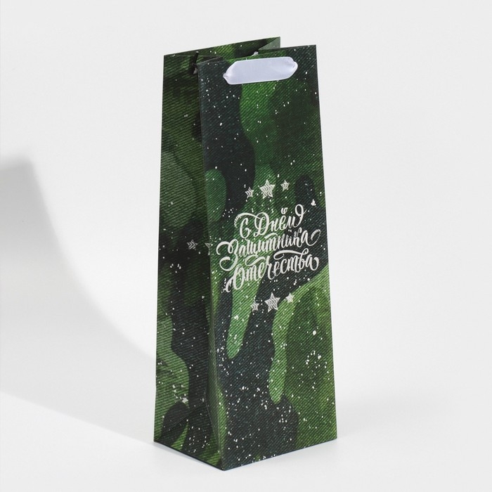 Пакет подарочный под бутылку, упаковка, «С днём защитника Отечества», 36 х 13 х 10 см