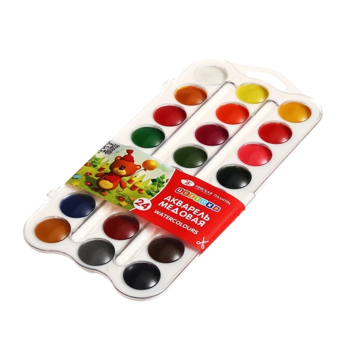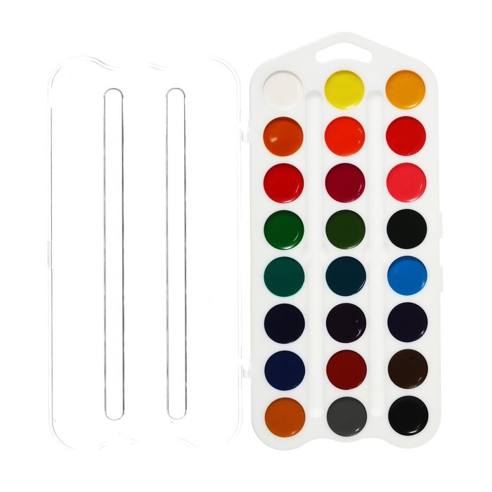 Акварель медовая 24 цвета, ЗХК "Цветик", без кисти, белый пластиковый футляр, 2742190