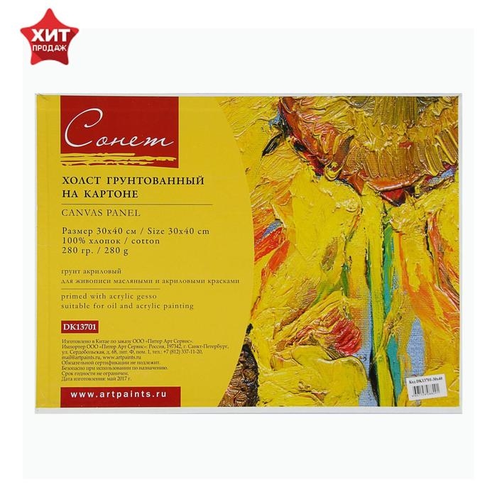 Холст на картоне 30 х 40 см, хлопок 100%, акриловый грунт, мелкозернистый, ЗХК "Сонет", DK13701-30x40