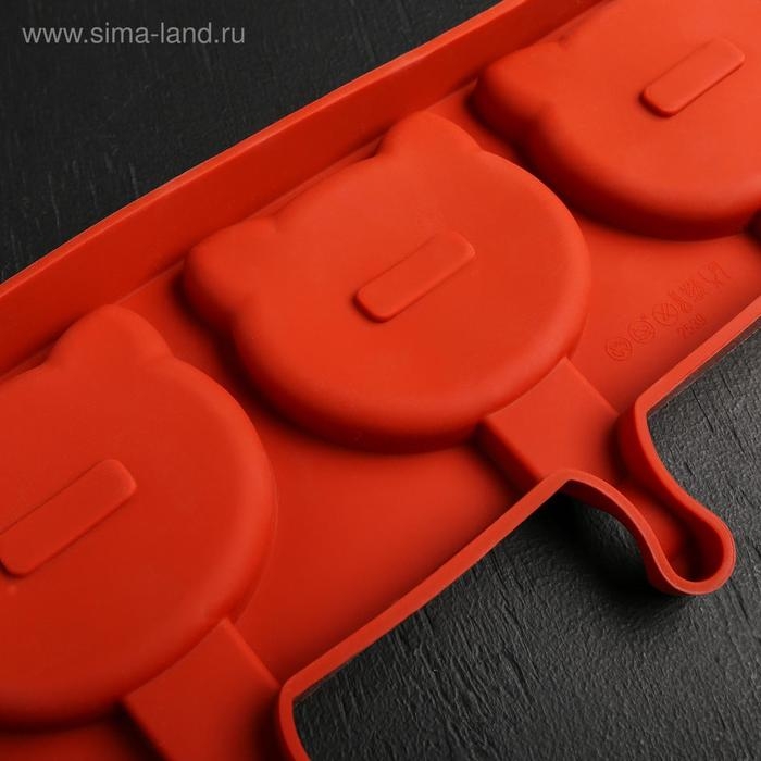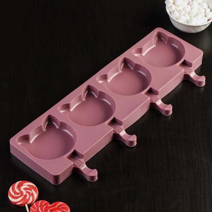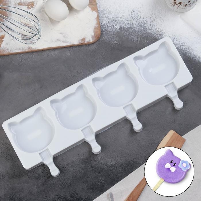 Форма для мороженого «Коты», силикон, 38×14,5×2,5 см, 4 ячейки, цвет белый