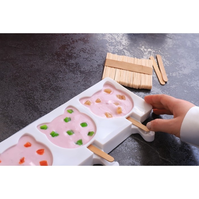 - Силиконовая форма для мороженого изготовлена из пищевого материала, имеет гибкие, мягкие стенки, благодаря чему десерты извлекаются очень легко.