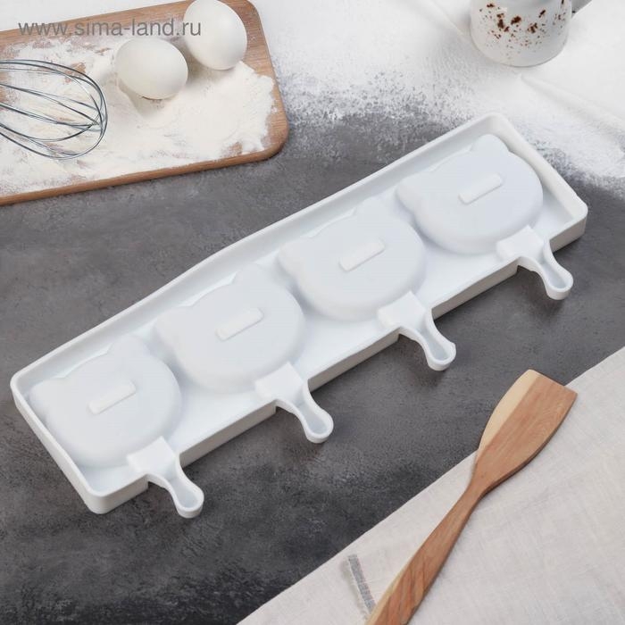 Форма для мороженого Доляна «Медвежонок», 13×11,5×7,5 см, 4 ячейки, цвет прозрачный
