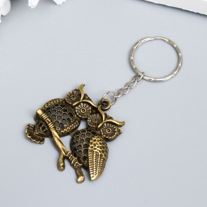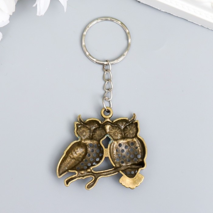 Брелок металл "Две совушки на ветке" ажурный 3,7х4,5 см