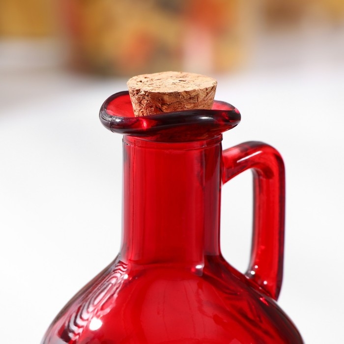Стильная и функциональная бутылка Доляна «Олио» - Прочная стеклянная, она оснащена удобной ручкой и надёжной пробкой, которая сохраняет вкус и аромат содержимого. Прекрасно подойдёт для хранения соусов, масла и других жидкостей. Яркий красный цвет добавит настроения вашей кухне. Рекомендуется мыть вручную без использования агрессивных моющих средств.