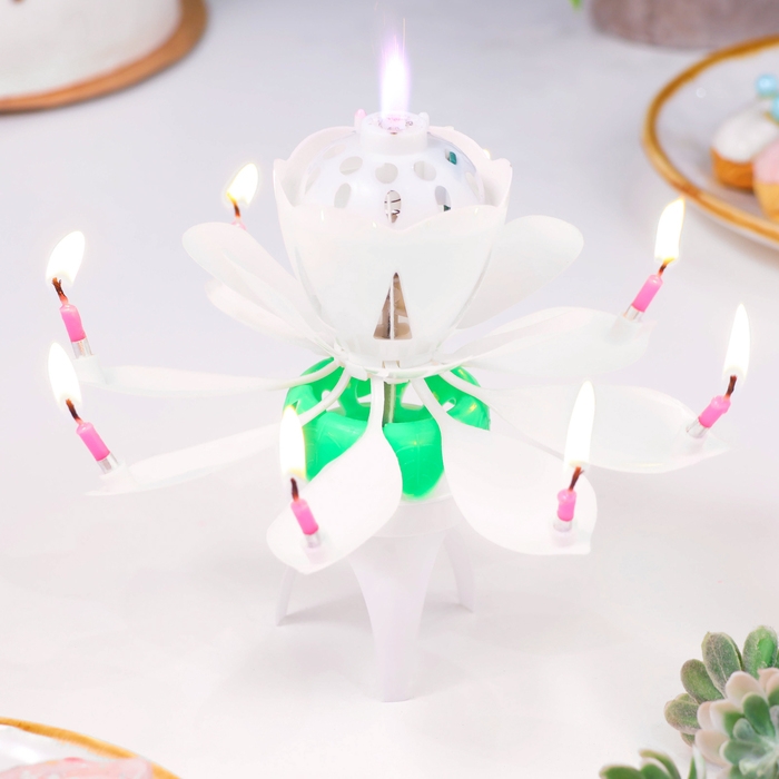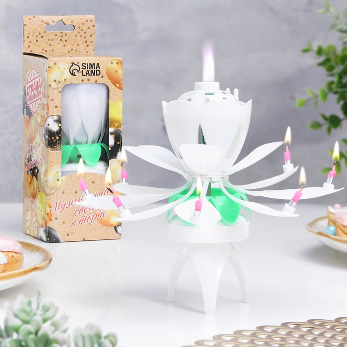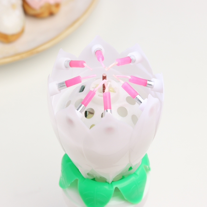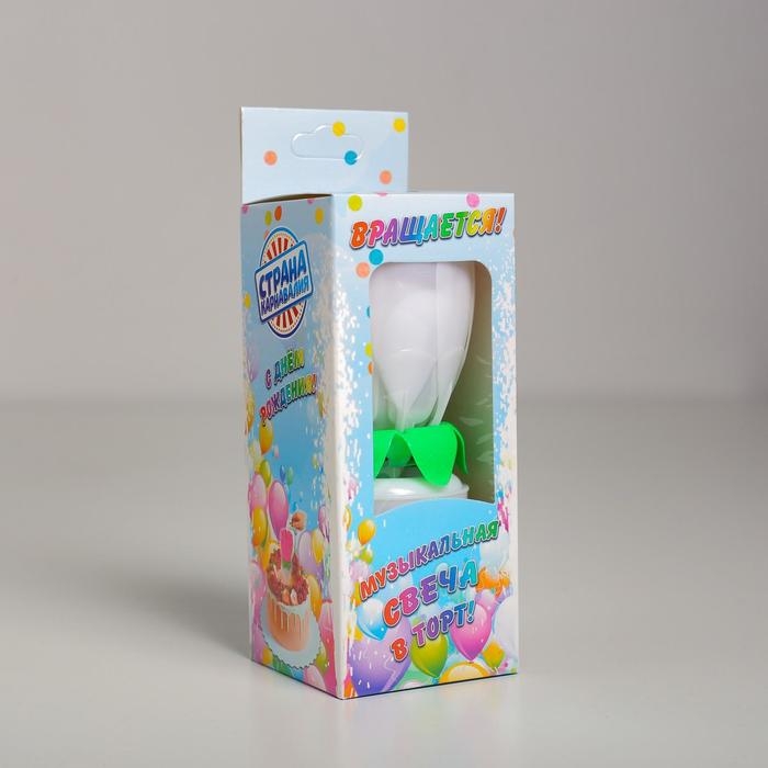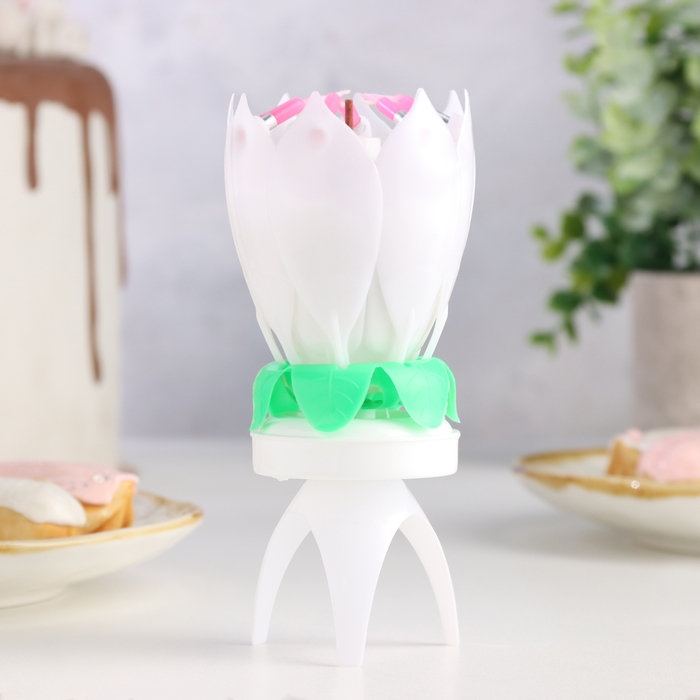 Свеча для торта музыкальная "Тюльпан", крутящаяся, белая, 14,5×6 см