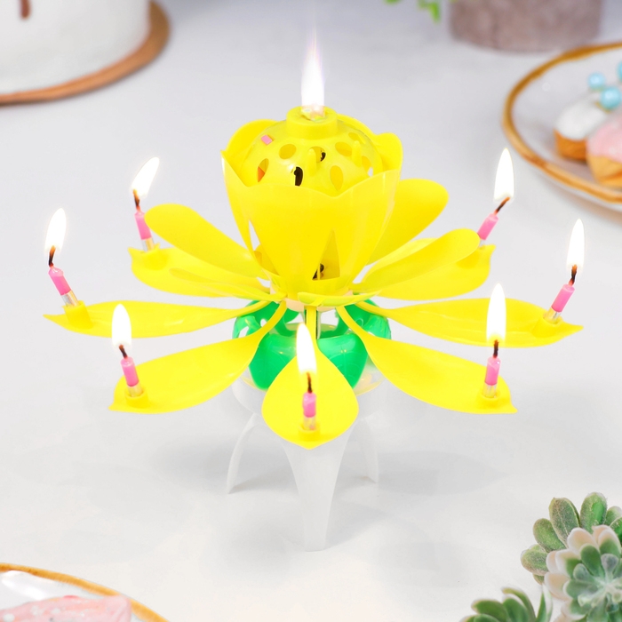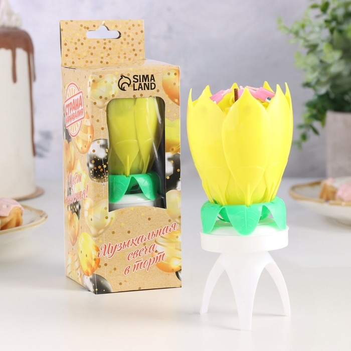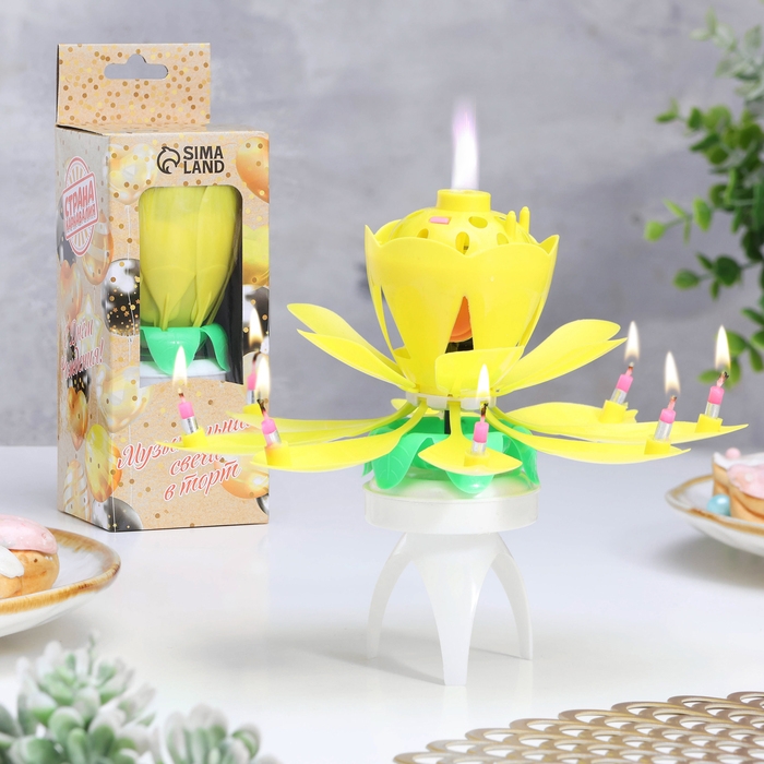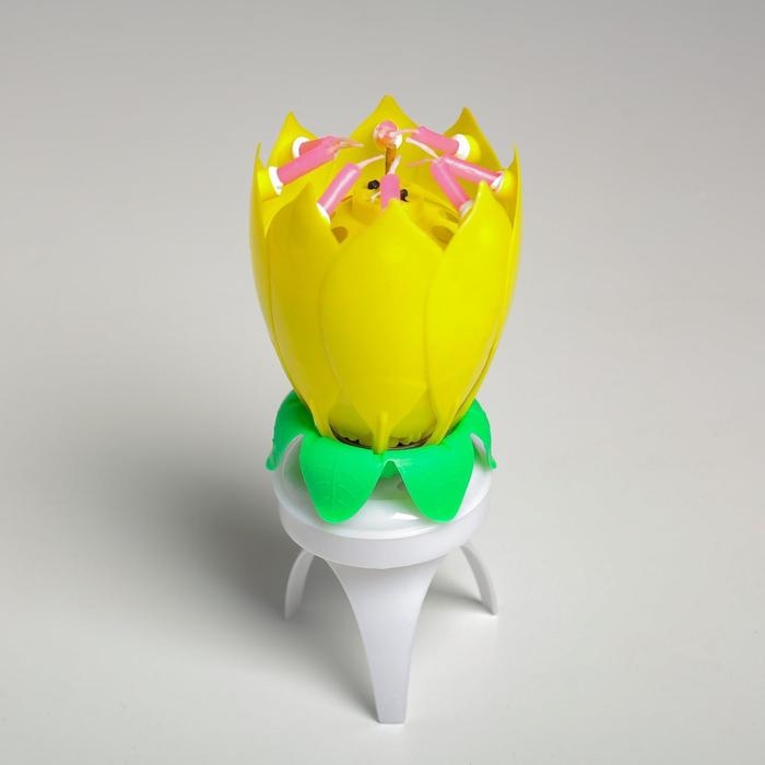 Свеча для торта музыкальная "Тюльпан", крутящаяся, жёлтая, 14,5×6 см