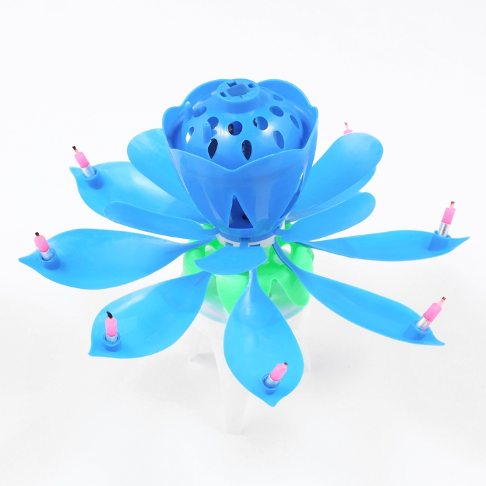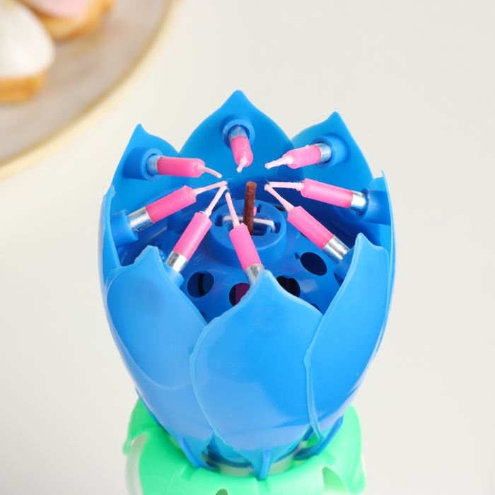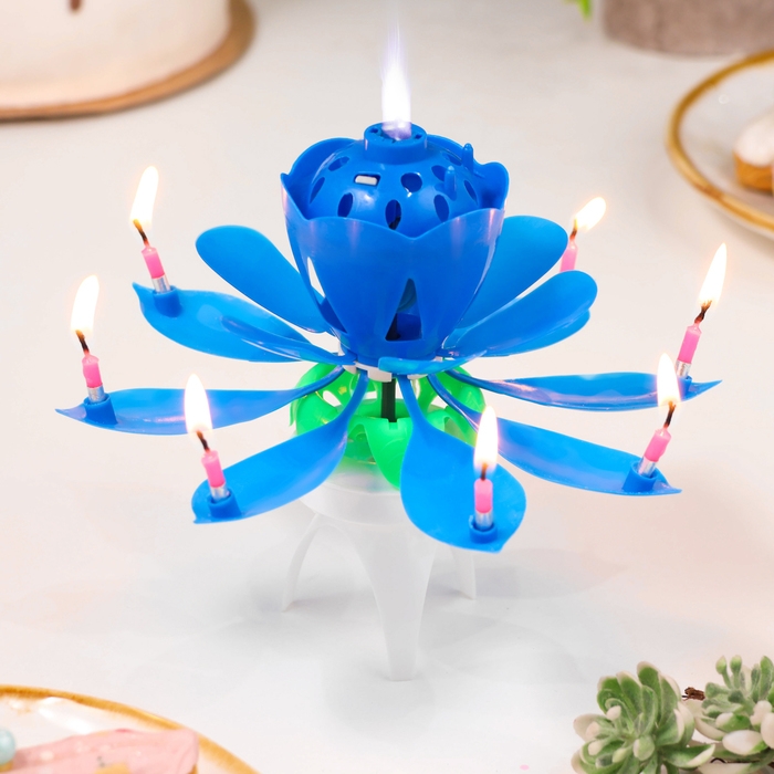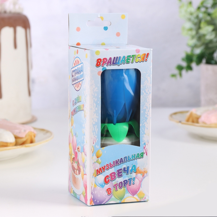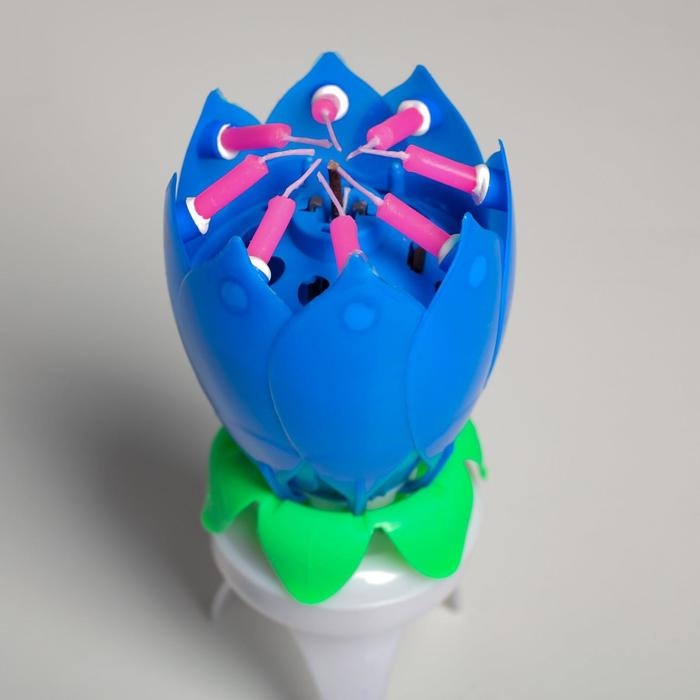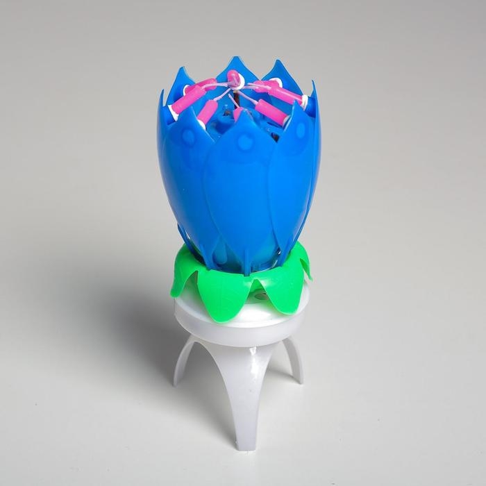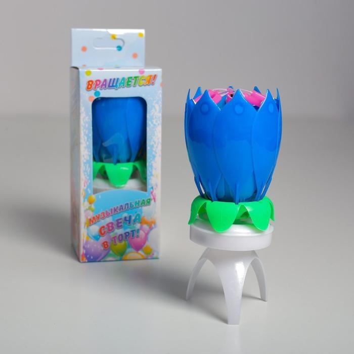 Свеча для торта музыкальная "Тюльпан", крутящаяся, синяя, 14,5×6 см