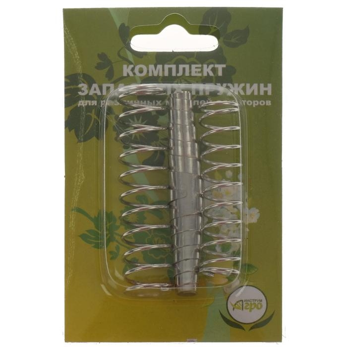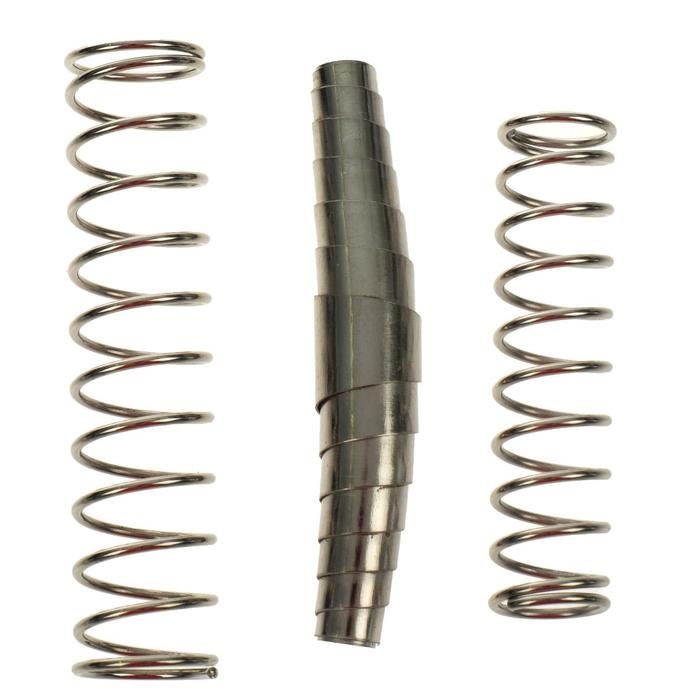 В наборе 2 витых пружины разной длины (6,3 × 1,4 см и 5 × 1 см) и 1 ленточная (d = 0,5- 1 см, L = 6 см).