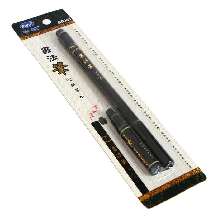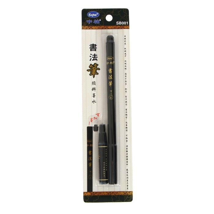 Кисть для каллиграфии, чёрная, заправляемая, с запасными чернилами