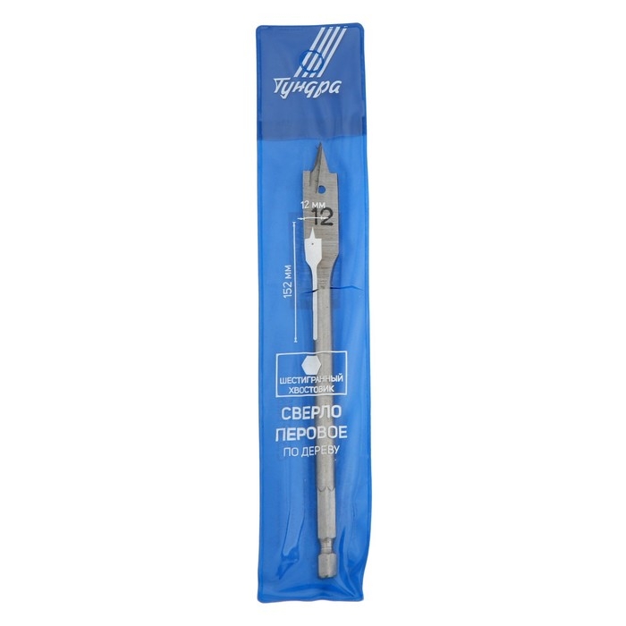 Сверло по дереву перовое ТУНДРА, шестигранный хвостовик, 12 х 152 мм