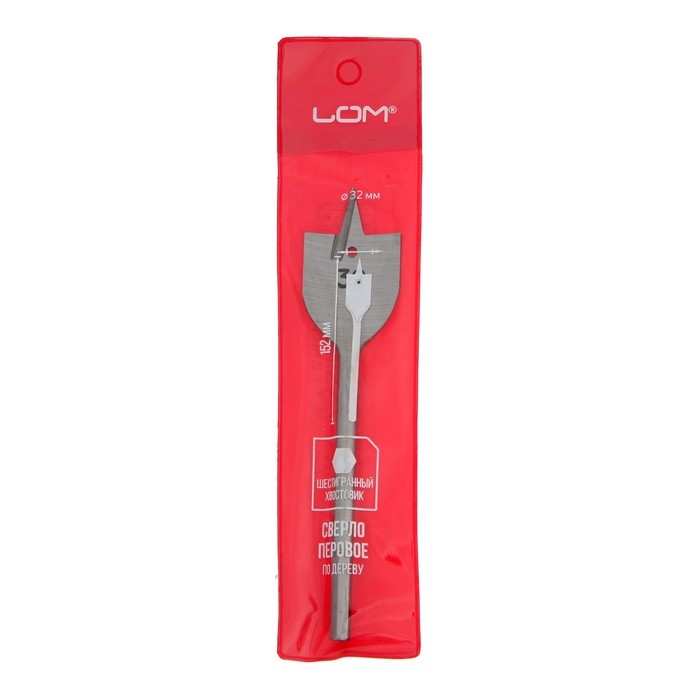 Сверло по дереву перовое ЛОМ, шестигранный хвостовик, 32 х 152 мм