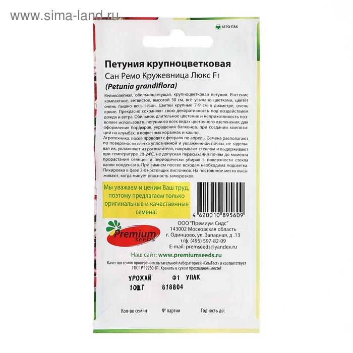 Семена цветов Петуния крупноцветковая Сан Ремо Кружевница F1, О, 10 шт