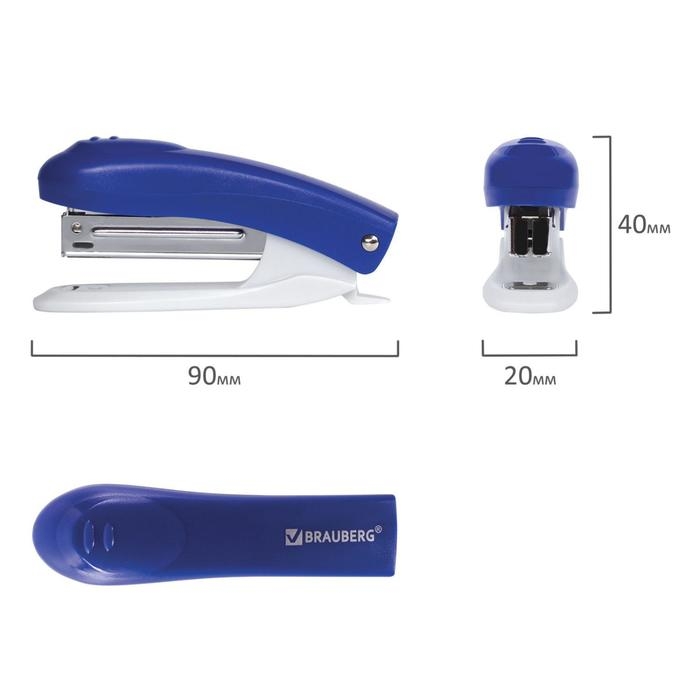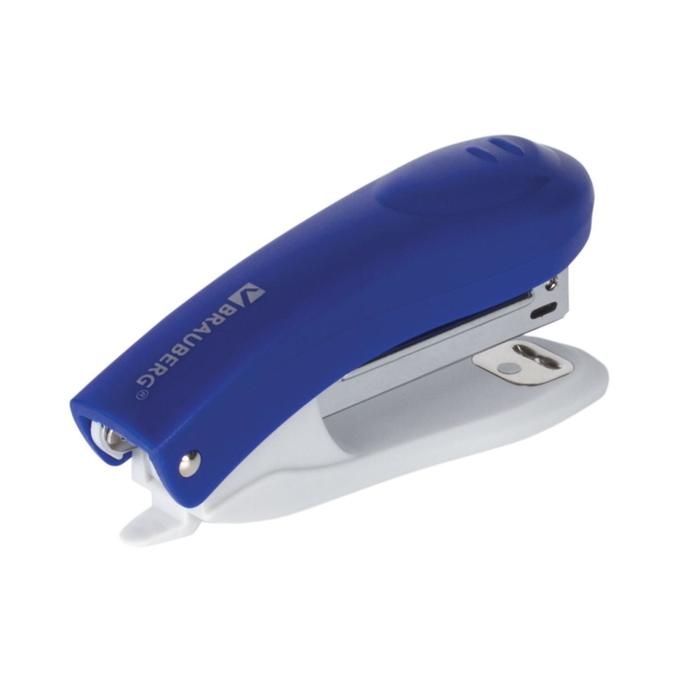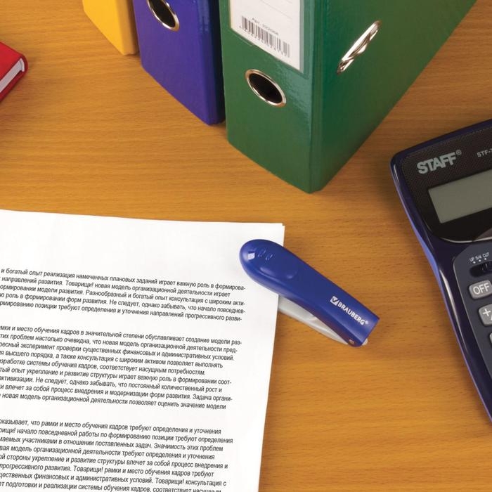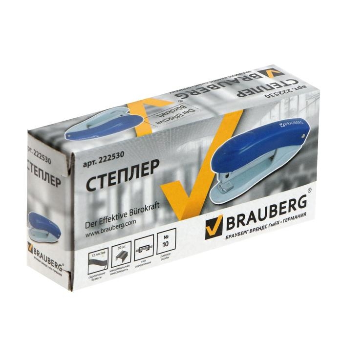 Степлер № 10 до 12 листов, BRAUBERG Einkommen, пластиковый корпус, встроенный антиСтеплер, синий