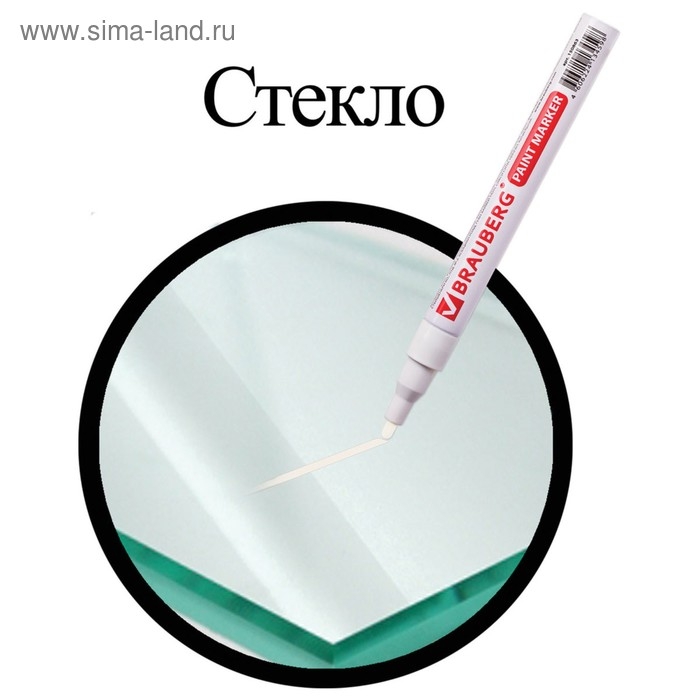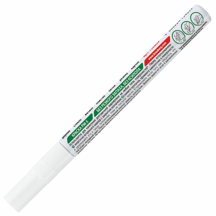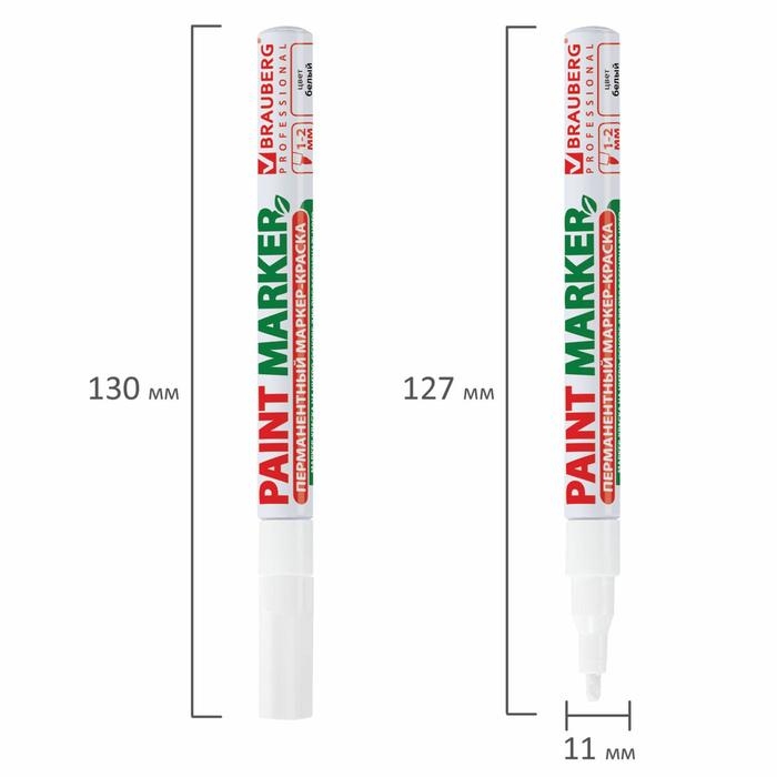 Маркер-краска (лаковый) 2.0 мм BRAUBERG, металлический корпус, белая нитро-основа