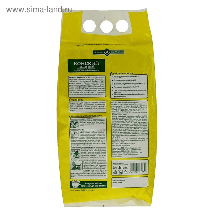 Удобрение органическое Конский перегной Долина плодородия, гранулинованное, 2 кг