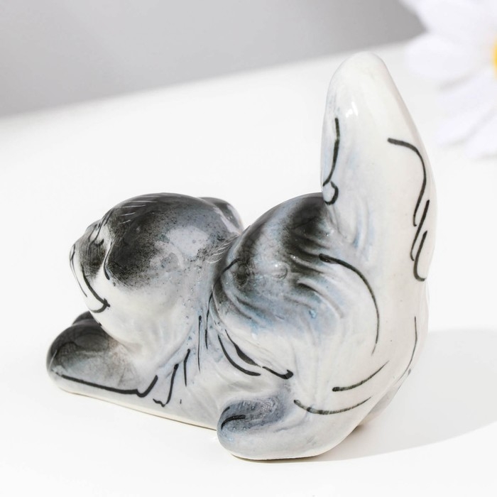 Сувенир «Котик», сидячий, полосатый темный, гжель