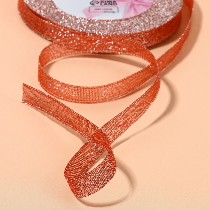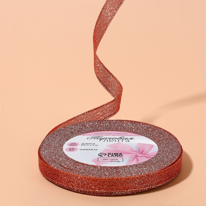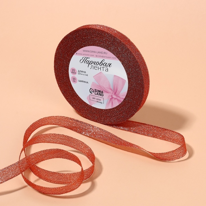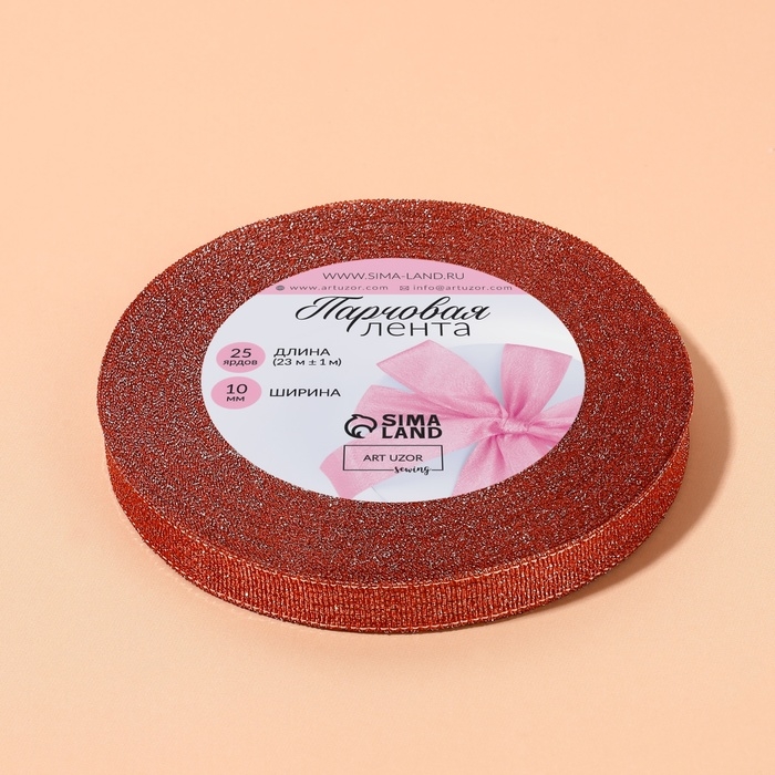Лента парчовая, 10 мм, 23 ± 1 м, цвет красный №039