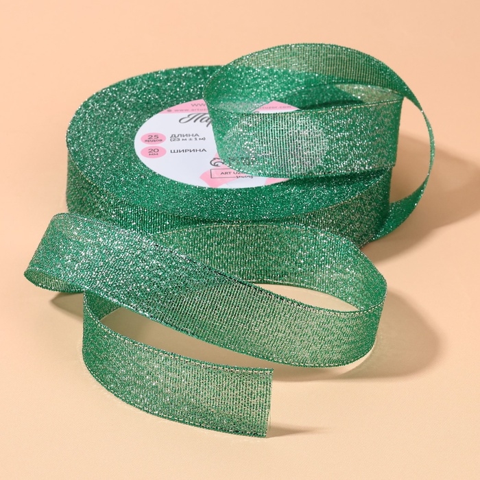 Лента парчовая, 20 мм, 23 ± 1 м, цвет зелёный №41