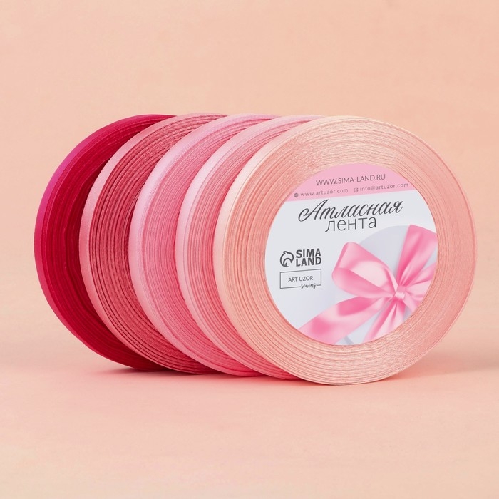 Набор атласных лент, 5 шт, размер 1 ленты: 10 мм × 23 ± 1 м, цвет розовый спектр