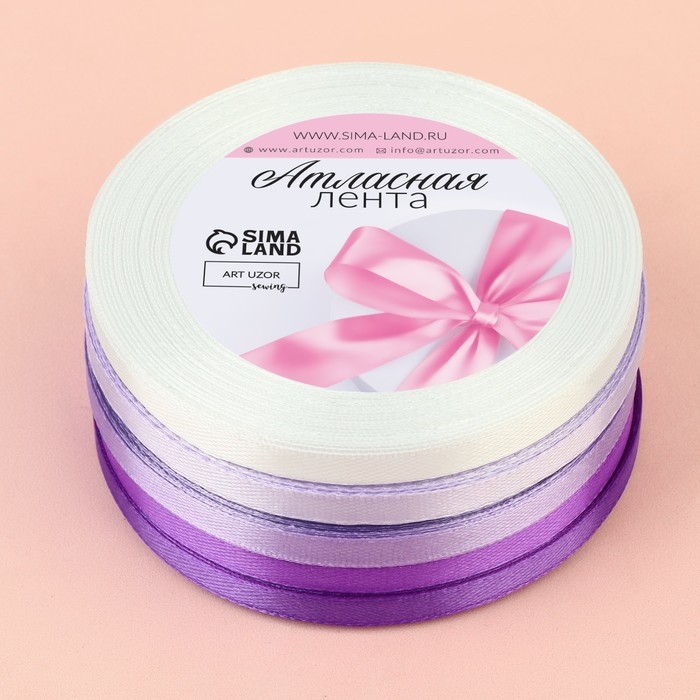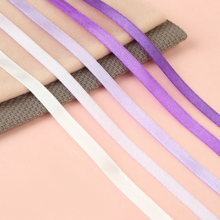Набор атласных лент, 5 шт, размер 1 ленты: 6 мм × 23 ± 1 м, цвет фиолетовый спектр