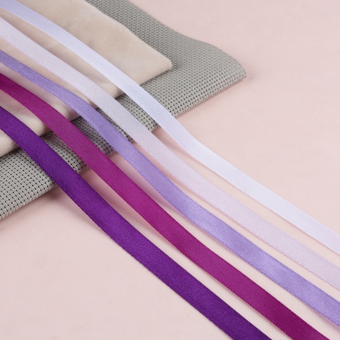 Набор атласных лент, 5 шт, размер 1 ленты: 6 мм × 23 ± 1 м, цвет фиолетовый спектр