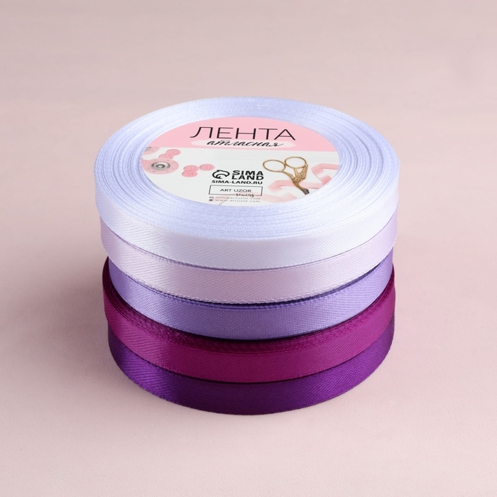 Набор атласных лент, 5 шт, размер 1 ленты: 10 мм × 23 ± 1 м, цвет фиолетовый спектр