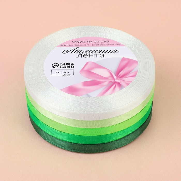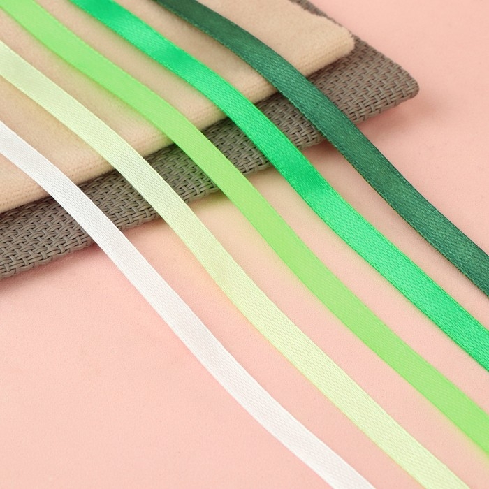 Набор атласных лент, 5 шт, размер 1 ленты: 6 мм × 23 ± 1 м, цвет зелёный спектр