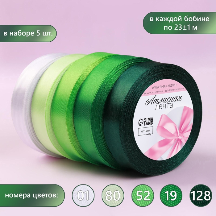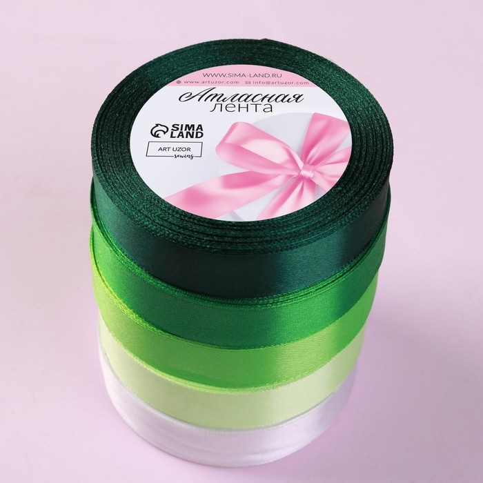 Набор атласных лент, 5 шт, размер 1 ленты: 20 мм × 23 ± 1 м, цвет зелёный спектр