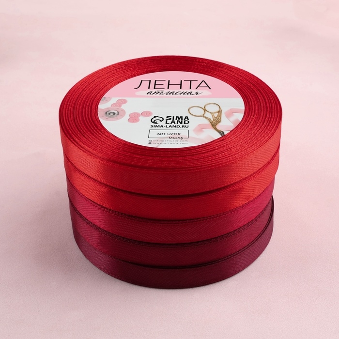 Набор атласных лент, 5 шт, размер 1 ленты: 10 мм × 23 ± 1 м, цвет красный спектр