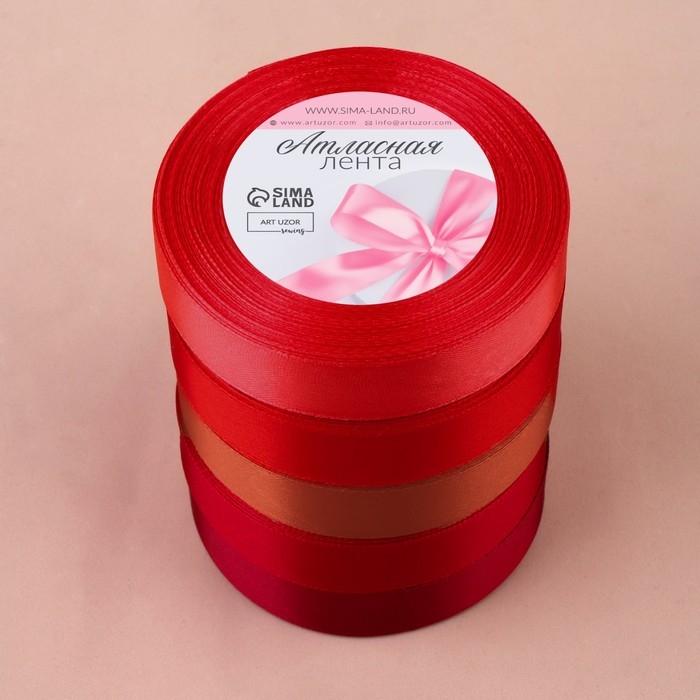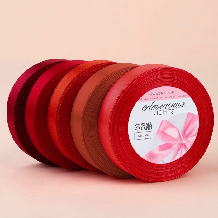 Набор атласных лент, 5 шт, размер 1 ленты: 20 мм × 23 ± 1 м, цвет красный спектр